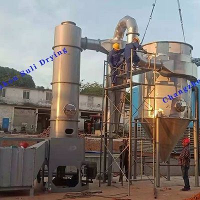 Warme lucht dringt tangentieel de bodem van de droger binnen en vormt een sterk roterend windveld aangedreven door de roer.Onder de krachtige werking van de hogesnelheidsroterende roermachine, worden de materialen door inslag, wrijving en scheerkracht verspreid en worden de blokmaterialen snel verpletterd, volledig in contact gebracht met de hete lucht, verwarmd en gedroogd.De gedroogde droge materialen stijgen met de hete luchtstroomDe kleine deeltjes worden uit het midden van de ring afgevoerd en door de cyclone separator en stofverzamelaar teruggevonden.De ongedroogde of grote stukjes materialen worden door de centrifugale kracht naar de muur van het apparaat gegooid en vallen weer naar de bodem om te worden verpletterd en gedroogd.